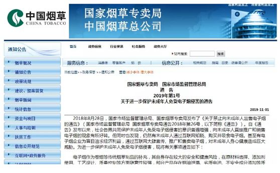 今年11月1日,國家煙草專賣局、國家市場監(jiān)督管理總局對外發(fā)布了一則禁令,要求不得向未成年人銷售電子煙,不得通過互聯(lián)網(wǎng)銷售電子煙,不得通過互聯(lián)網(wǎng)發(fā)布電子煙廣告。電子煙網(wǎng)絡(luò)禁令一發(fā)布,各大電商平臺和網(wǎng)絡(luò)店鋪紛紛開始下架電子煙,一時有關(guān)電子煙的各種消息在網(wǎng)上傳播開。
